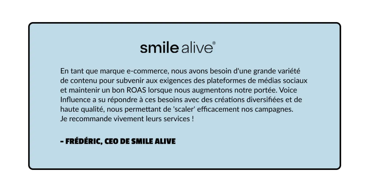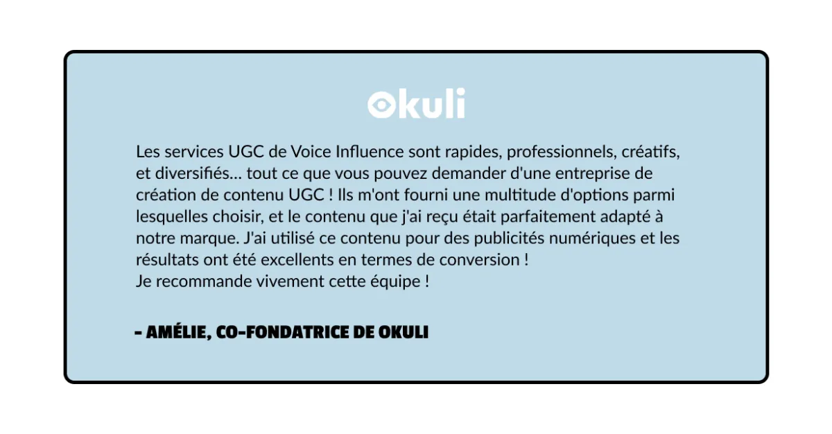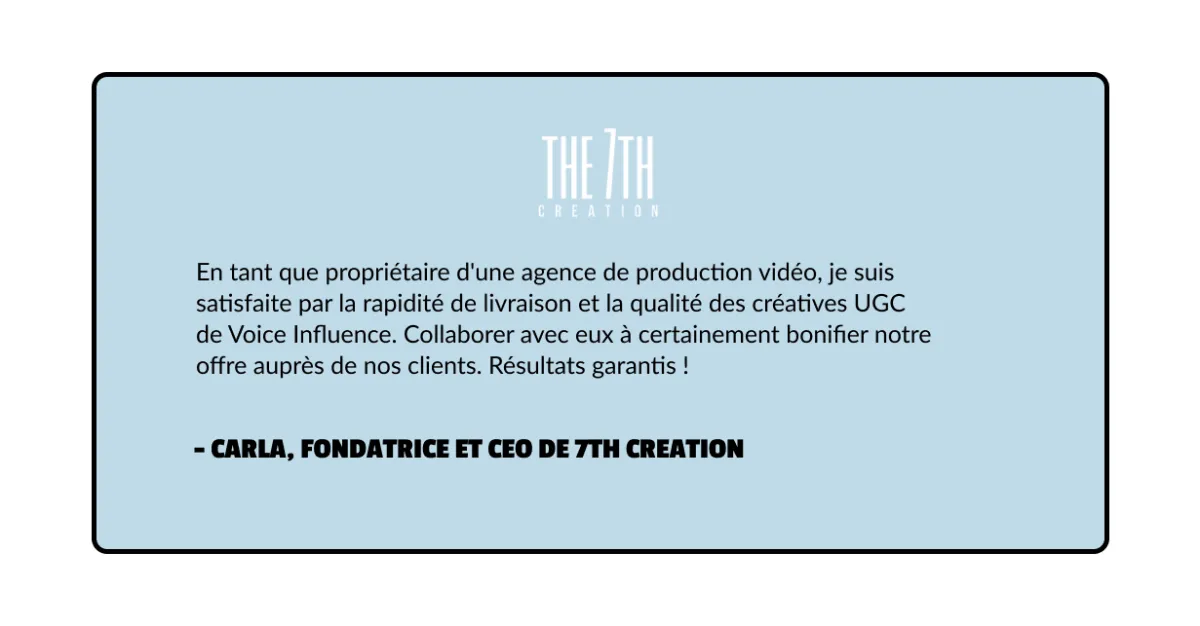 Le contenu généré par les utilisateurs (UGC) est créé par de vrais consommateurs ou créateurs, mettant en avant votre produit ou service de manière authentique et crédible. Ce type de contenu inspire confiance et génère plus d'engagement que les publicités traditionnelles.